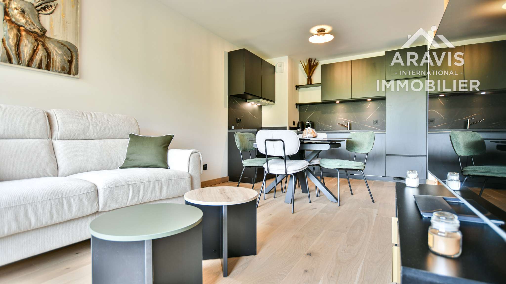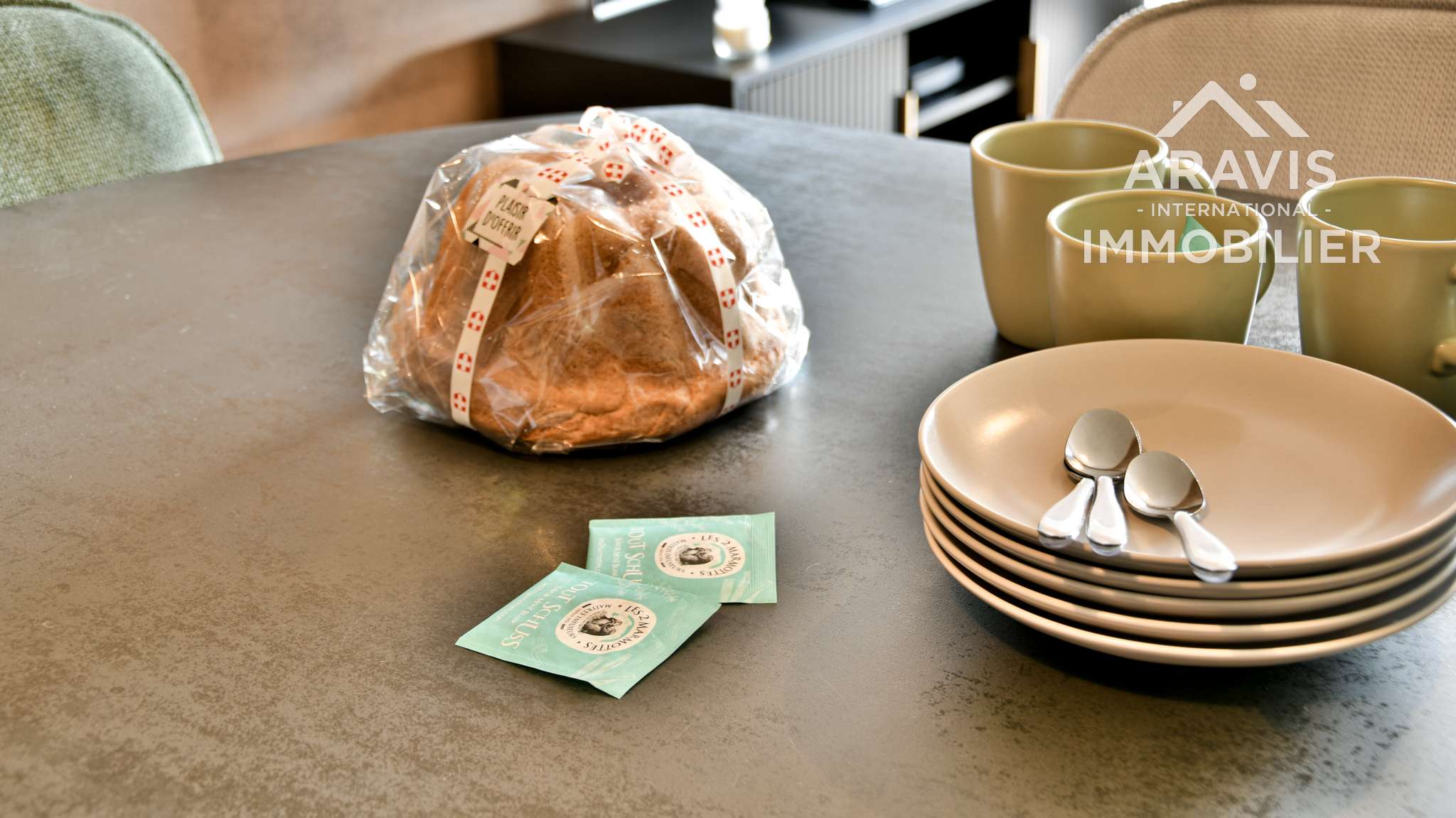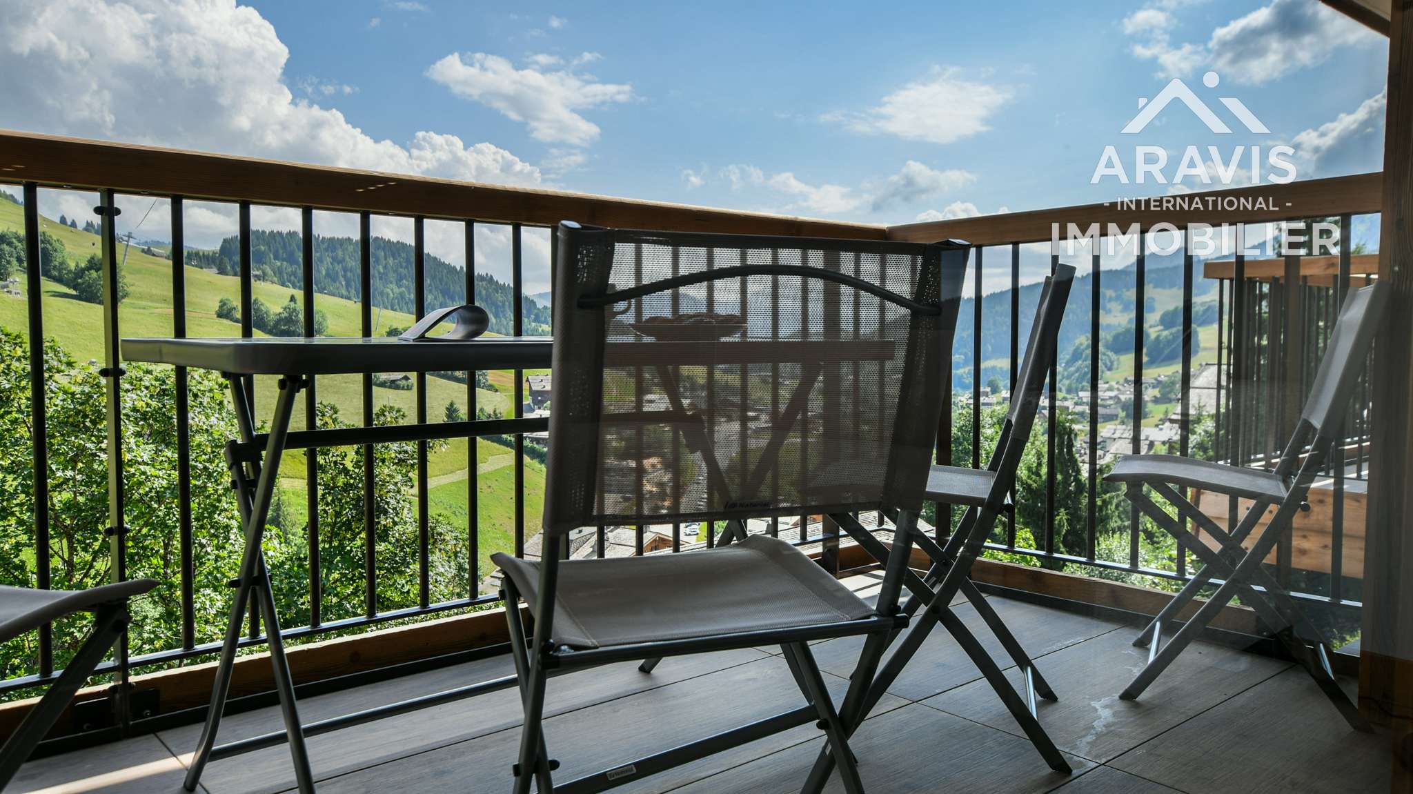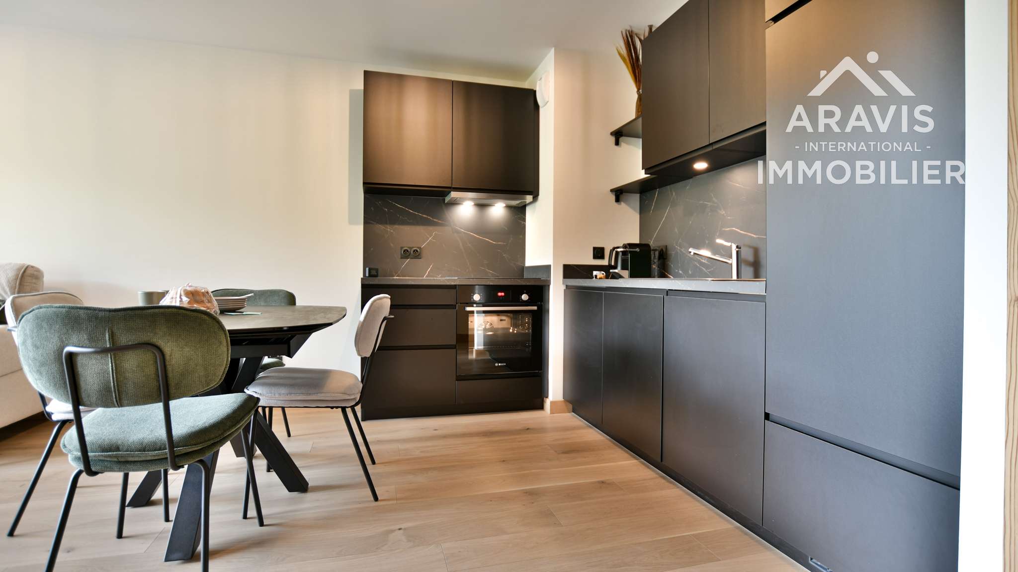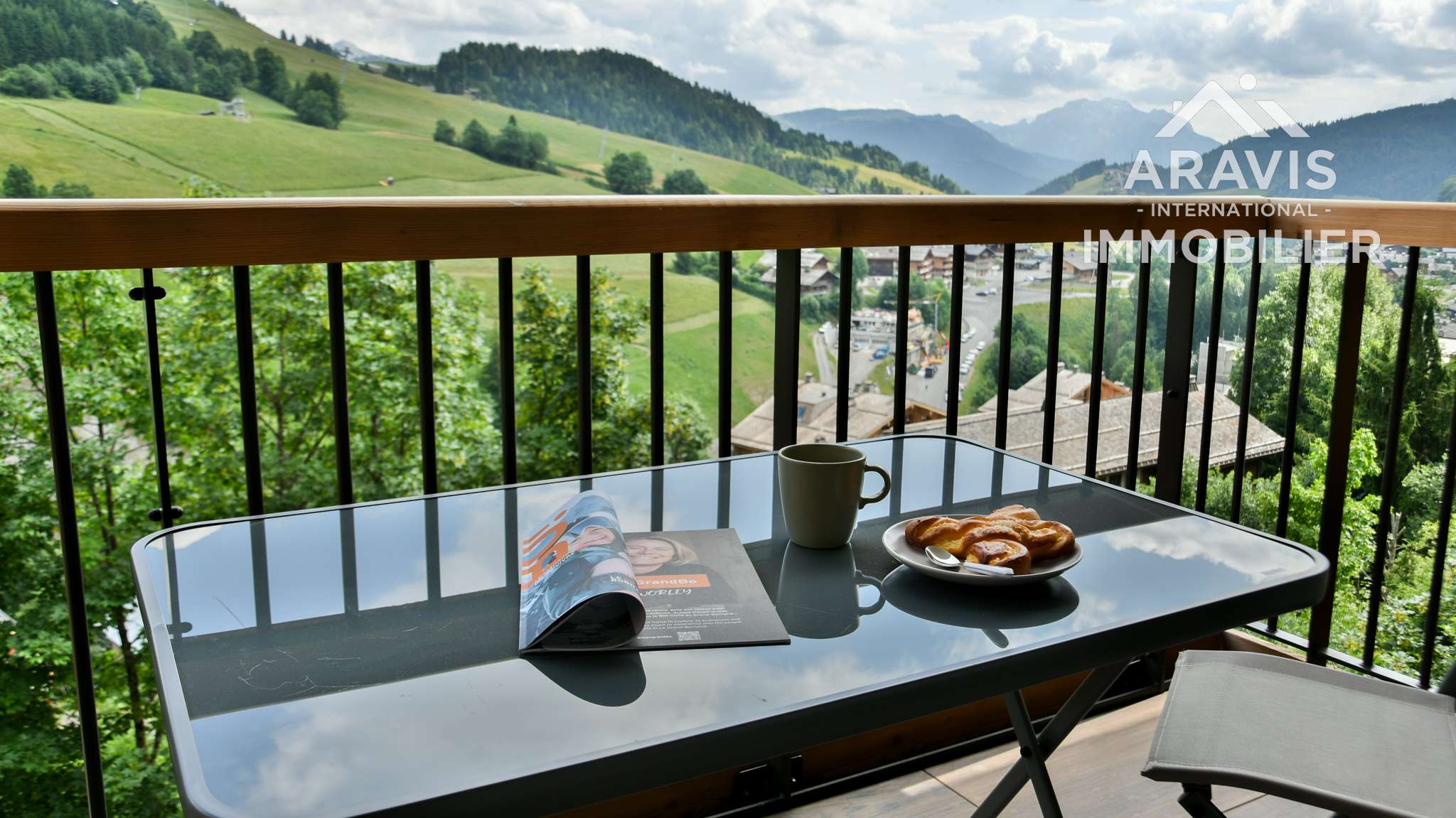 Appartement tout confort pour 2 adultes + 2 enfants, avec balcon panoramique, cuisine équipée, casier à ski et navette aux pieds de la résidence.
