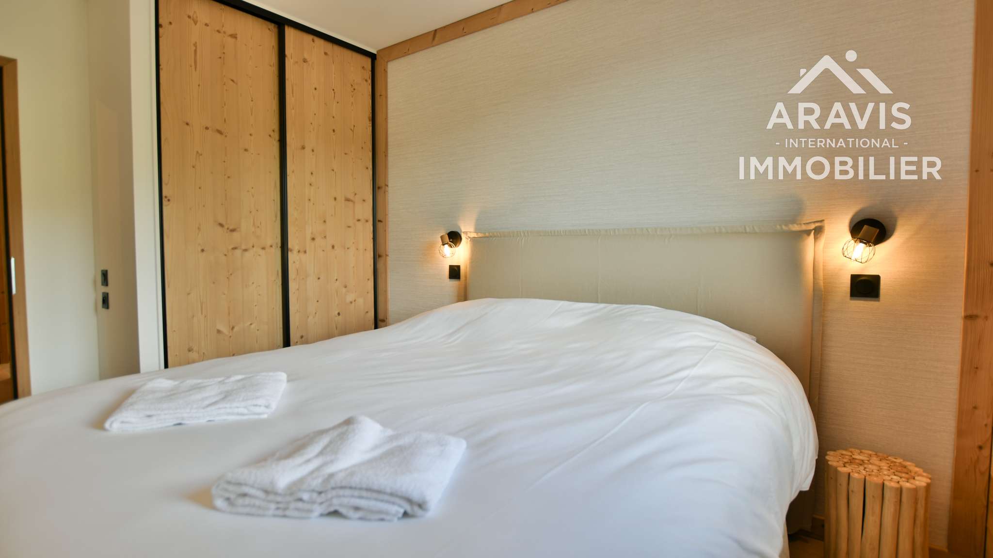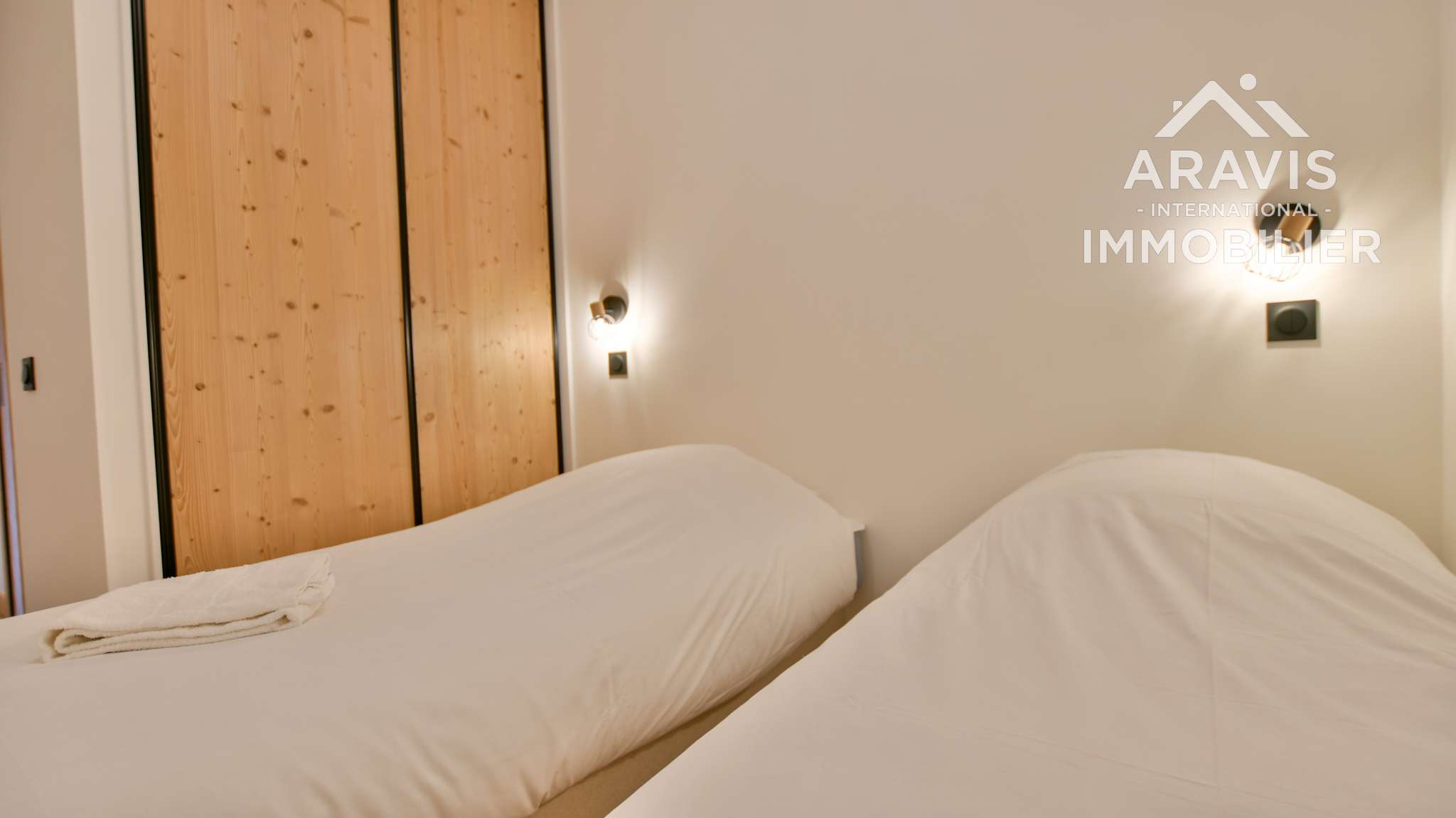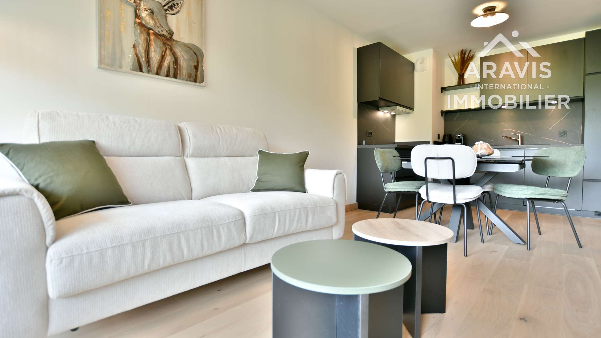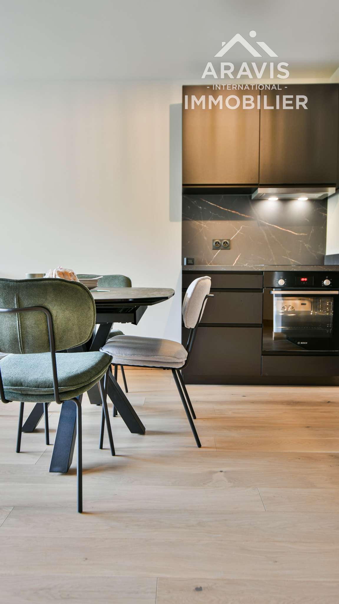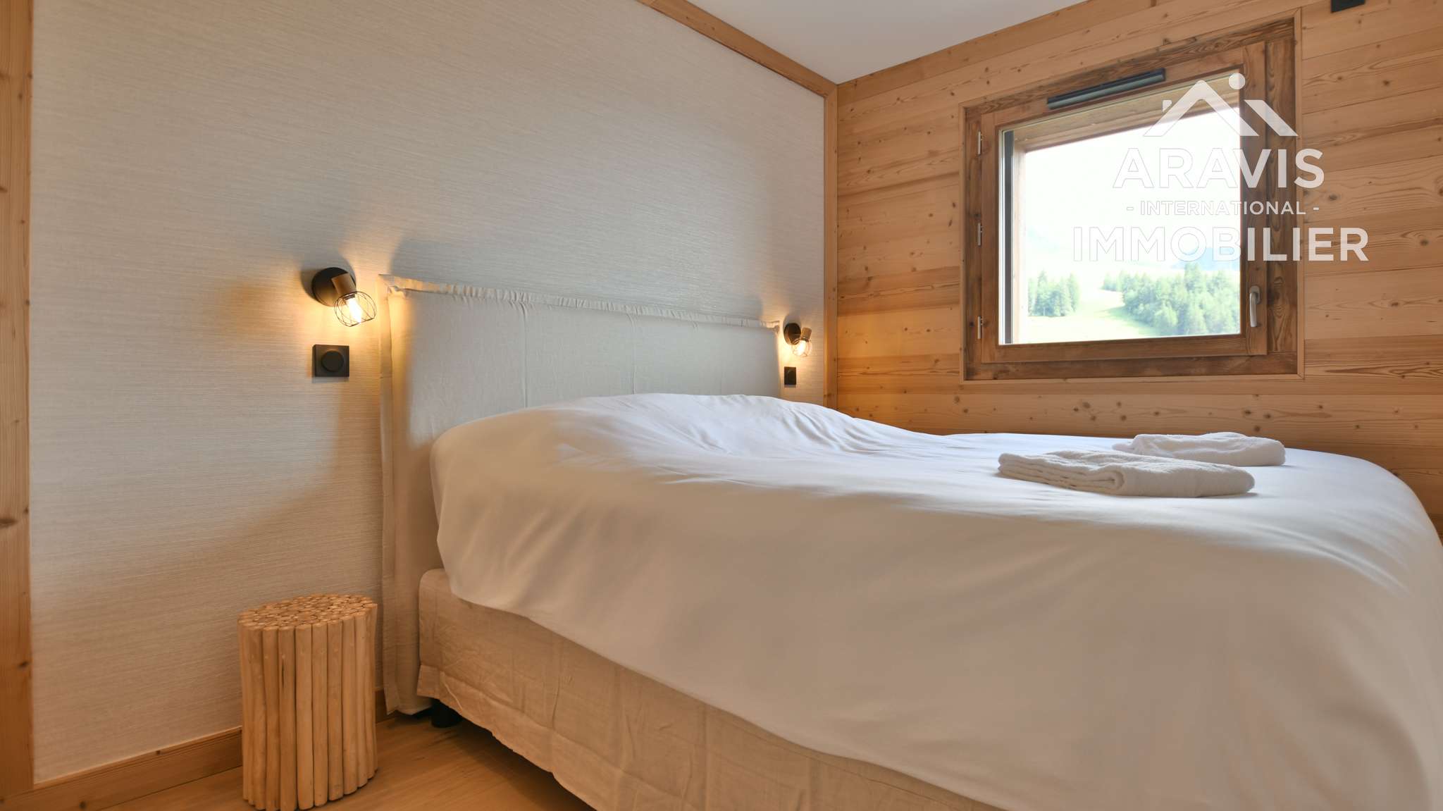 Appartement tout confort pour 2 adultes + 2 enfants, avec balcon panoramique, cuisine équipée, casier à ski et navette aux pieds de la résidence.