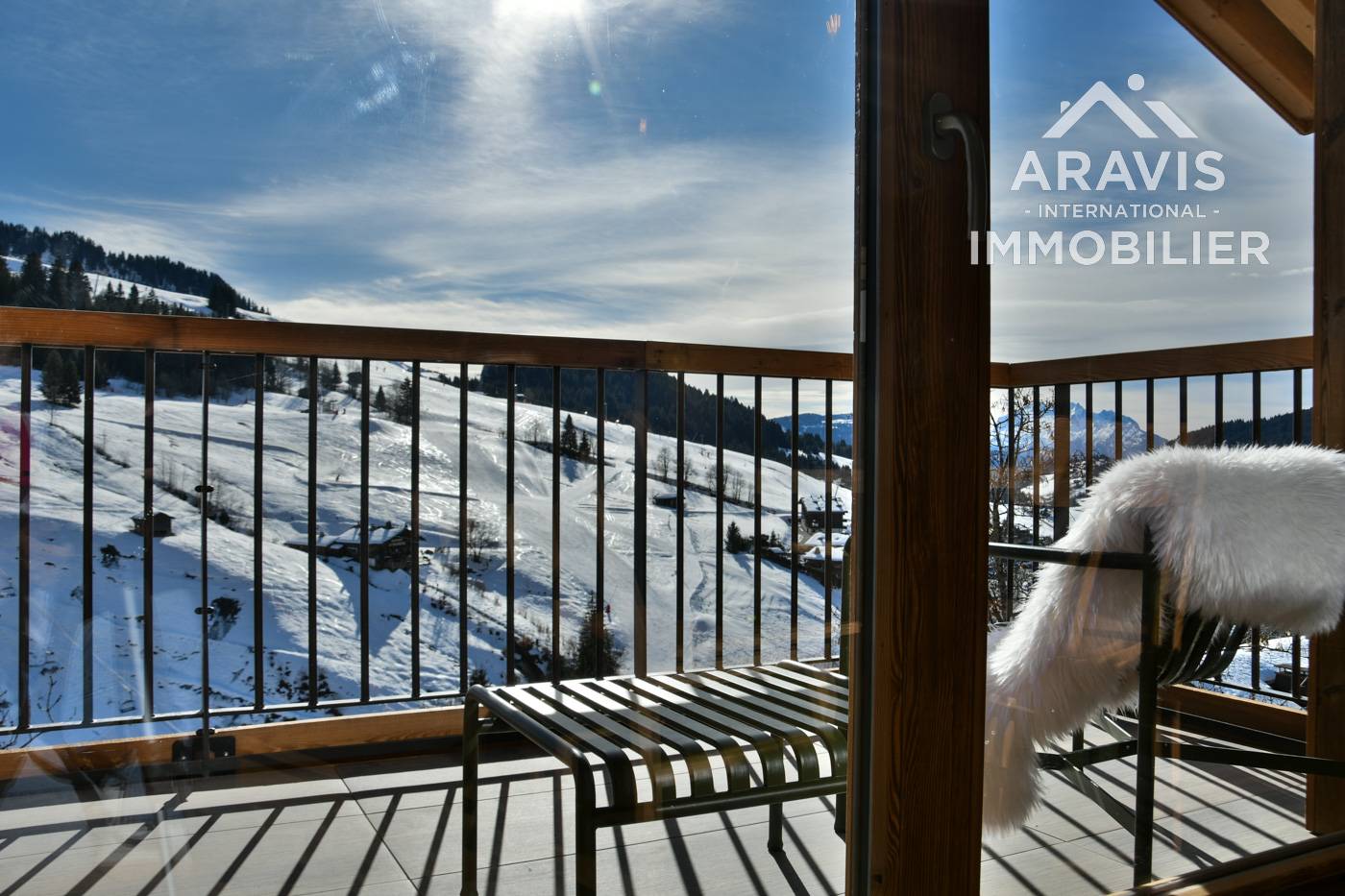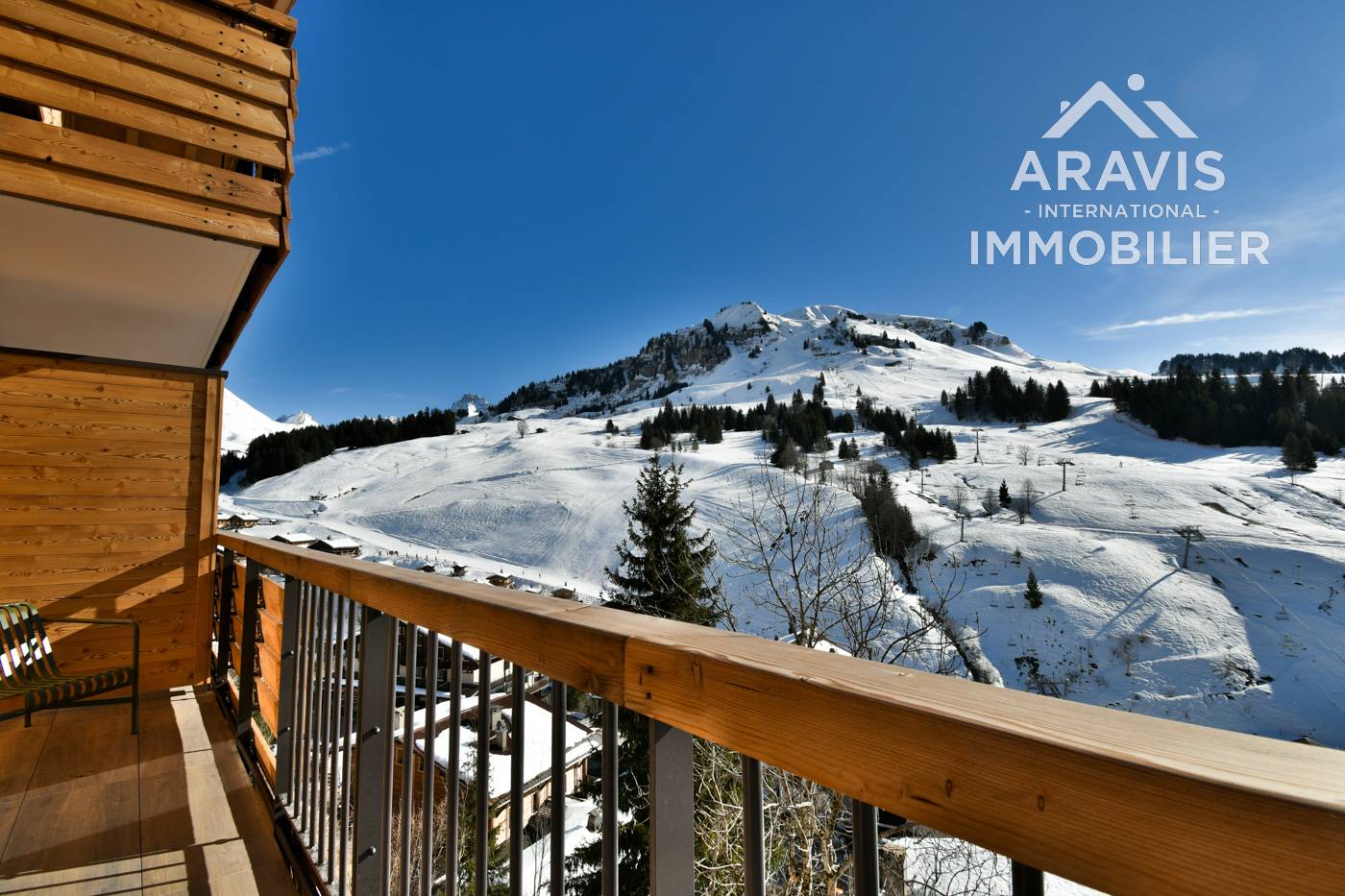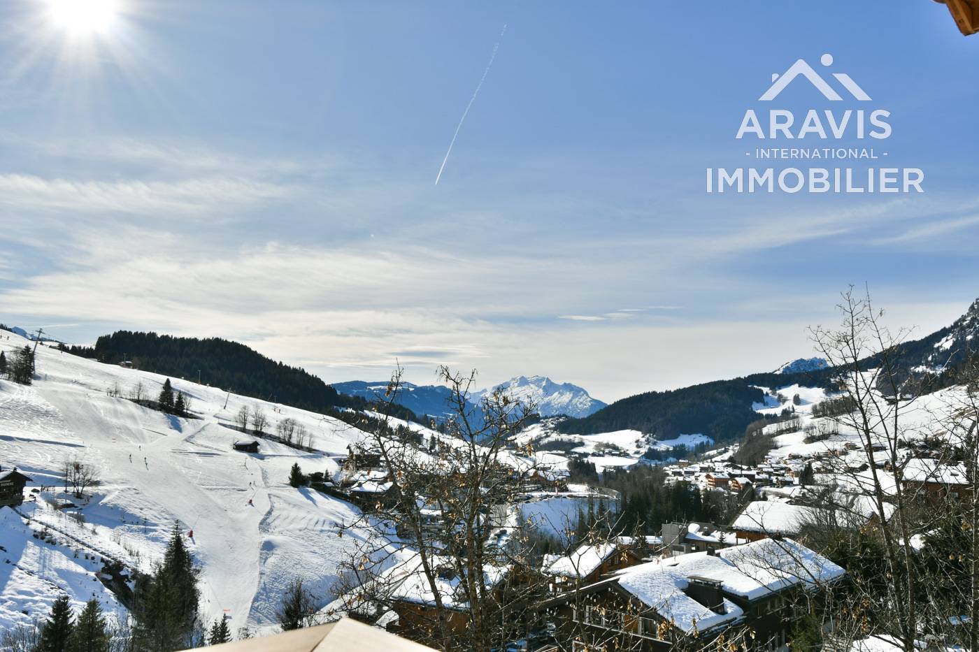 La vue du balcon ravira vos yeux. Celle-ci souvre à 180 degré sur les belles montagnes du Grand Bornand, le Lachat et la Pointe Percée, vue sur les pistes, sur le travail des dameuses la nuit, vue sur les alpages en été.